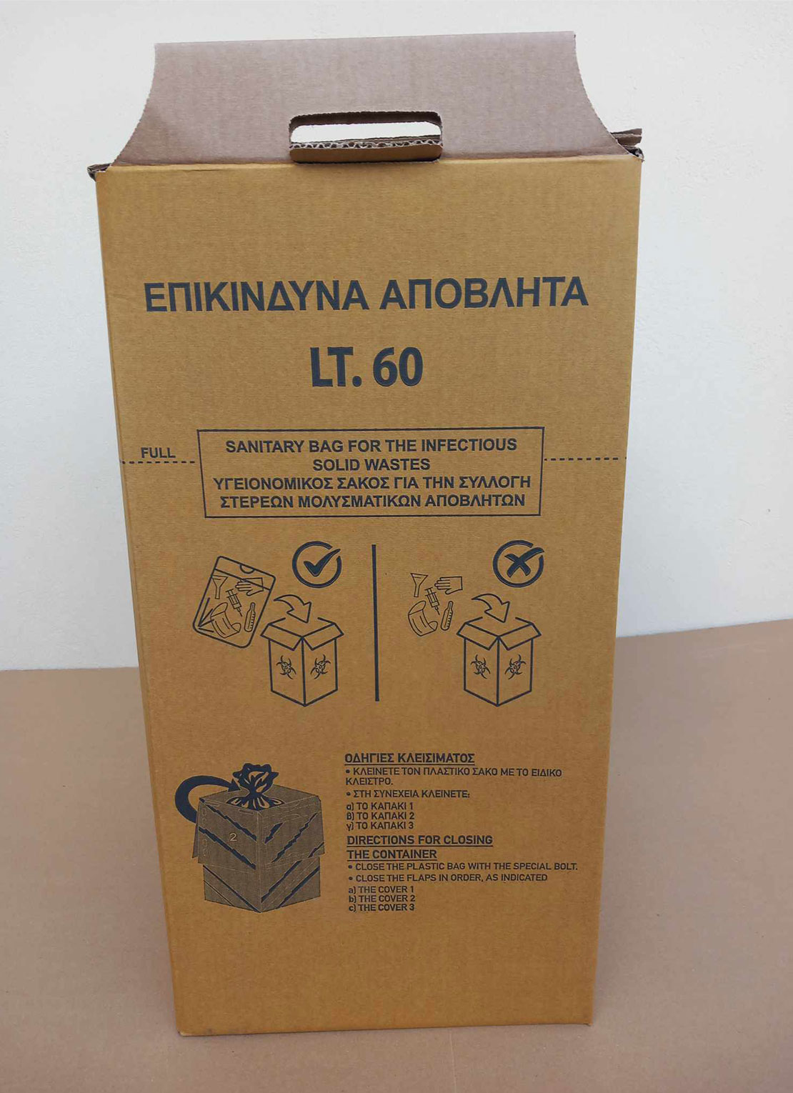 - Σε κίτρινο χρώμα για αποστείρωση και σε κόκκινο χρώμα για αποτέφρωση.